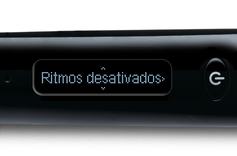 - Toque no botão “r” repetidamente para rolar pelas cinco opções de trilha de ritmo.