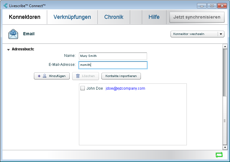 Richten Sie ein Adressbuch ein, das die Livescribe Connect-Smartpen-App verwenden kann.