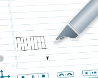 12. The smartpen shows blinking rectangles on your piano. Draw rectangles after the 2nd, 3rd, 5th, 6th, and 7th piano key lines, as in the display.