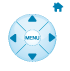 Tapping the up arrow or the area around it is called tapping up on the Menu button. Tapping the right arrow or the area around it is called tapping right on the Menu button. Likewise, we speak of tapping down and tapping left. You can also tap and double-tap on the center of the Menu button, where the word Menu is printed.