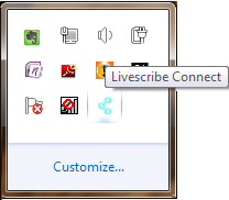L'icône Livescribe Connect s'affiche dans la barre d'état système lorsque l'application s'exécute.